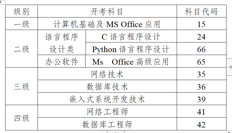 1.开考级别及开考科目