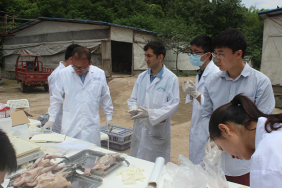 “努力”、“创新性强”、“科研奇才”是Kocas身上的显著标签。在成大学习生活的这段时间,Kocas每天来回奔波于海外继续教育学院和肉类加工重点实验室。早上,Kocas在海外继续教育学院和留学生一起上中文课,学习中国、学习成都的文化;下午和王卫导师团队的研究生们待在实验室,阅读文献、做实验、准备自己的研究报告。在成大半年的学习中,Kocas首要任务是做自己的课题,即完成一份有关《中德食品安全监管体制的对比分析》的报告。对科研有着浓烈热情的Kocas还跟着导师主动参与肉鸡无抗养殖技术应用示范,即在不使用抗生素的情况下研究如何在中国养殖土鸡。除了在实验室做鸡肉的纤维、色泽、水份等基础实验外,还跟着导师团队一起到金堂的无抗鸡养殖基地,亲自观察无抗鸡生长的环境,提出及具有创新性的意见。