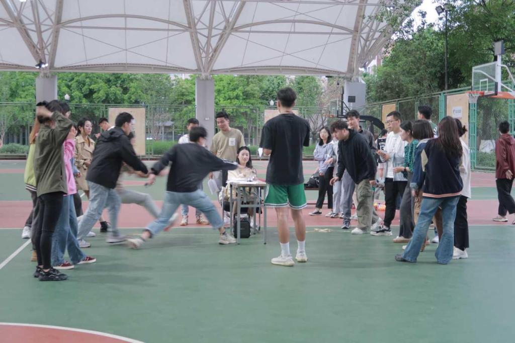 趣味运动会由六个小游戏组成,包括双人背夹球接力跑、考考你的肺活量、顶A4纸接力赛跑、“八人九足”运动、吹乒乓球、大运会百科快问快答。各团体以小组为单位参赛,每个小组男生三名,女生五名。小组成员需要通过相互协作完成各项游戏获得积分,以获得积分决定最终成绩排名。最终,10支队伍通过各成员间的相互合作,都获得了不错的成绩,本次比赛在欢笑中圆满结束。