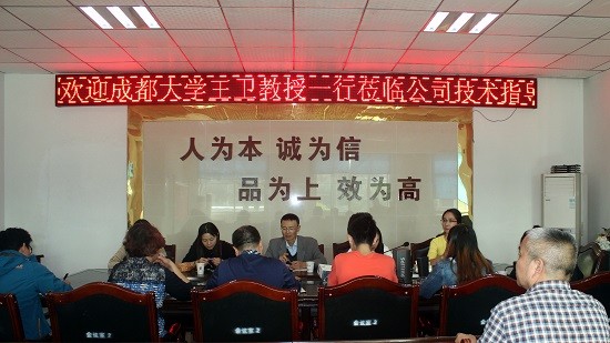 2017年11月上旬,肉类加工四川省重点实验室首席专家王卫教授带领实验室专家赴四川宜宾南溪、筠连等地调研,深入宜宾市娥天歌食品有限公司、四川锦膳食品有限公司、四川徽记食品股份有限公司等企业考察调研。专家团队参观了宜宾特色农产品鹅肉、肉干、燃面等加工基地和生产线,与企业负责人就当地特色农产品加工技术、产业现状与发展趋势、产品开发方向以及企业未来发展方向等进行了研讨交流,对企业生产技术难题进行了现场咨询指导,并就肉类加工四川省重点实验室与宜宾相关企业的产学研合作,联合申报和实施农产品开发项目、为企业提供技术培训等进行了洽谈。