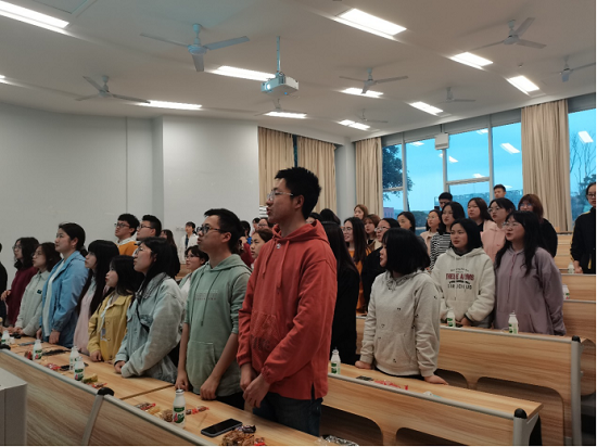 全体起立,共唱团歌《光荣啊,中国共青团》,本次团日活动正式开始。