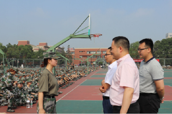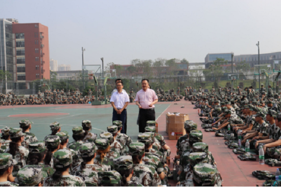 邹书记与参训的同学们进行亲切交流,询问大家在军训中的收获与感受。邹书记同时也嘱咐教官和同学们在后面的训练时间内注重身体,注意防暑,在安全、健康的前提下进行训练。