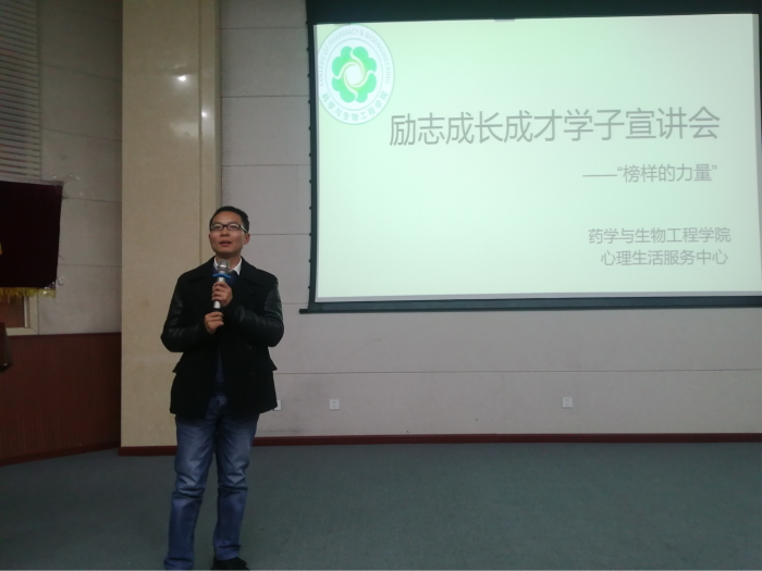 本网消息(文/杨艺 图/宣传中心)11月27日19点,禁忌书屋 药学与生物工程学院心理生活服务中心主办的“药生‘榜样的力量’励志成长成才学子宣讲会 ”在九教演播厅开展。此次到场的嘉宾有学工办唐远谋、游曌、三位优秀学子以及分团委学生会主要负责人。