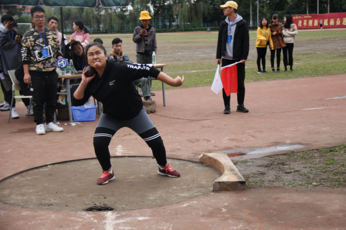 铅球项目中,女子组罗虹夺得金牌,男子组王杰夺得铜牌。图为罗虹准备投掷铅球。