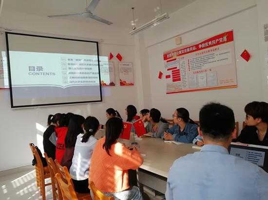 通过本次“不忘初心、牢记使命”主题党课,使得同学们对香港目前的局势了解的更加清晰,对于维护中央对港澳全面管制权与特区高度自治有机结合起来,更加坚定了“一国两制”基本方针,不断推进祖国和平统一大业的前进。
