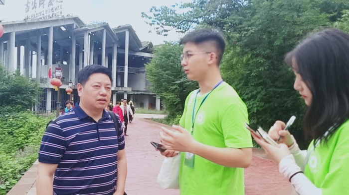早上8:00,全体队员出发前往瓦屋山景区。沿途,团队发现景区环境干净清洁,且鲜有垃圾乱扔现象。到达景区后,各小组立即按照计划分组展开调研。首先,游老师带两队小组对景区"垃圾银行"工作人员进行采访,询问了"垃圾银行"的运行机制及现存问题,并针对"垃圾银行"的重要性、可行性、前瞻性进行多方面咨询,工作人员对此积极回复。同时,其余两组就"垃圾银行"相关问题对游客展开调查问卷,收集游客的意见。紧接着,全体成员汇合,共同进行问卷的深入调查,最后,共收集近百份调查问卷。