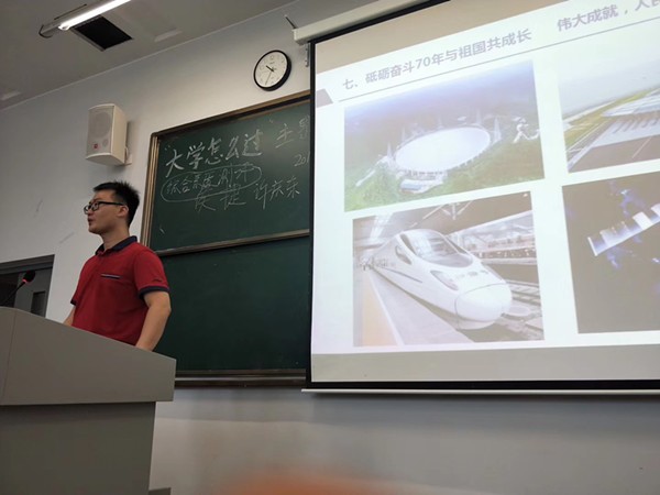 ,在这里将开始你们新的人生阶段。在介绍学校的发展时,他说,目前学校学院正在大步向前发展。大运会落户成大等,都为学校学院的发展提供了强大的动力,希望同学们你能够充分利用好现在的时间和有利条件不断发展提升自己。同时在中华人民共和国70周年华诞的重要阶段,希望同学们今后将自身的发展与国家社会的进步紧密的联系起来。