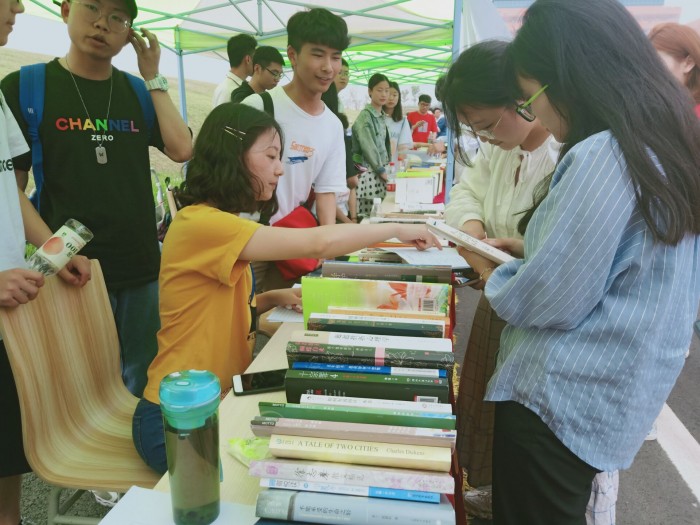 于综合教学楼旁举办了第七届图书漂流活动,心里生活服务中心为禁忌书屋