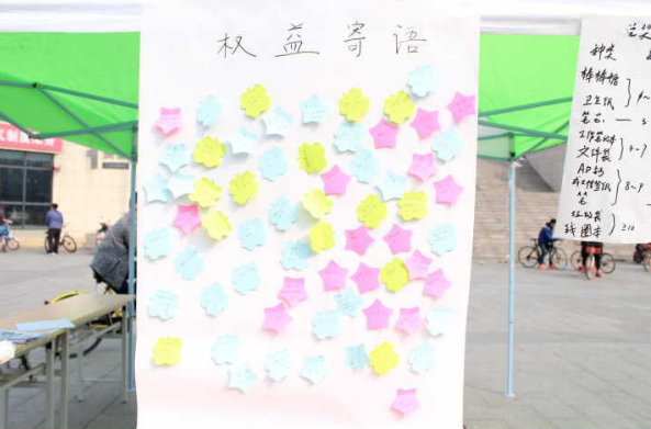 活动最后同学们纷纷在权益墙上写了自己的权益寄语以及有关维权的相关问题,现场秩序井然,氛围浓厚,本次活动圆满结束。