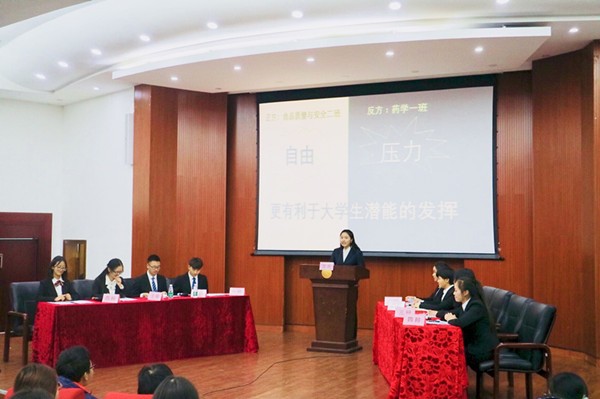 辩论队于学术交流中心举行了"纵横杯"新生辩论赛决赛,历时2个月的艰苦奋斗与残酷的绝杀最终有两支队伍脱颖而出,他们分别来自药学专业和食品科学与工程专业。