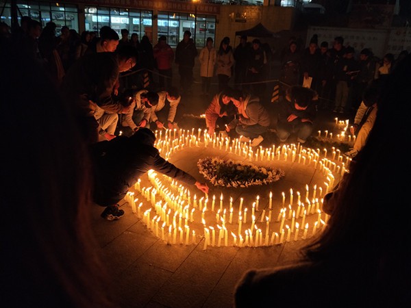 新空间开展了“南京祭忆”烛光祭、“珍爱和平,勿忘历史”签名活动,众多同学献上白色菊花和蜡烛,悼念南京大屠杀遇难同胞,祈祷世界和平。设立国家公祭日,纪念南京大屠杀死难者,就是为了让我们不忘历史,警示现在,防止历史悲剧重演!