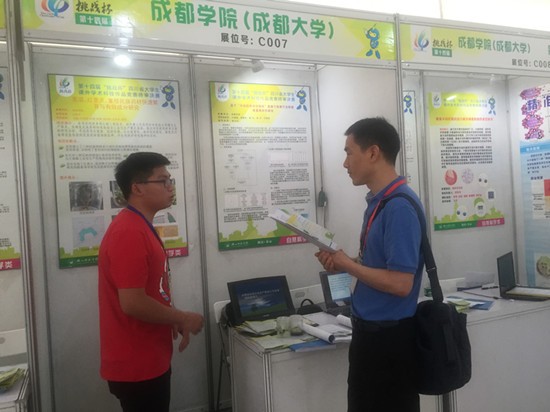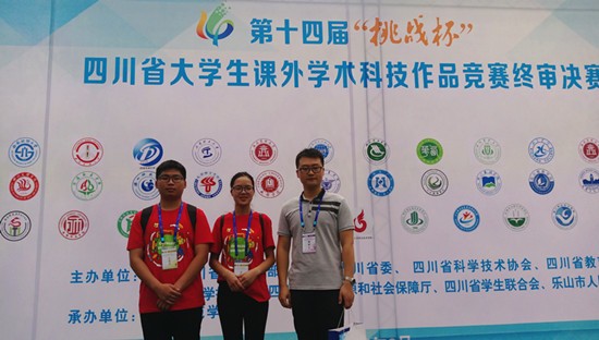本网消息(图、文/邵洋)6月10日至12日,第十四届“挑战杯”四川省大学生课外学术科技作品竞赛终审决赛在乐山师范学院隆重举行,我院学生团队获得二等奖一项,三等奖一项。项目学生负责人付春梅、刘鑫,以及学院学工办老师邵洋参加了此次比赛。