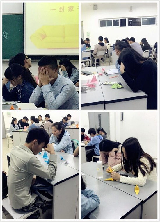 在班会上,秦老师通过千纸鹤分组、家书分享、肢体语言造型、歌曲欣赏等丰富多彩的活动形式给大家带来了不一样的班会感受,同时也教给了同学们和父母处理感情的方法。班会结尾,通过一个展现“献给父母的爱”的小游戏让同学们感触更加深刻。