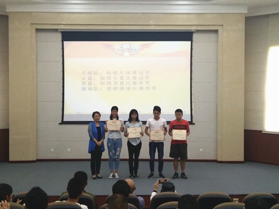 在九教演讲厅举行了2017年运动会表彰大会,表彰在本届运动会中所有的教练员、运动员和志愿者。学院党委书记阳东,党委副书记李行参加。