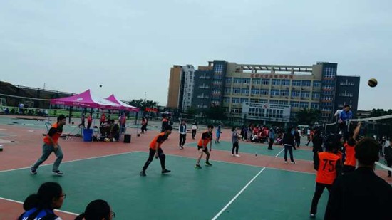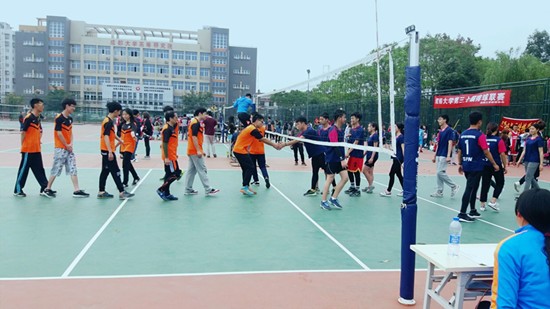 排球队面对实力强劲的旅游与经济管理学院。在学院漆文胜老师的指导和鼓励下,同学们在被1:1逼平的情况下,抵住了压力拿下了关键的第三局。最终以2:1的比分取得了比赛的胜利。