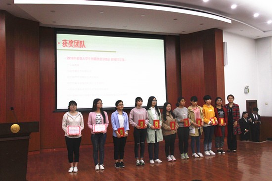 接下来是颁奖表彰环节,分别对在2016学年各项科创活动中获得优异成绩的团队颁奖。