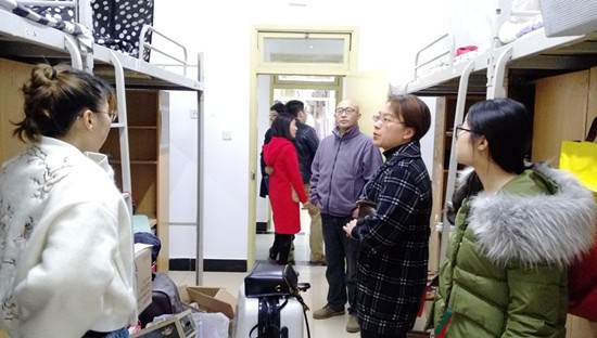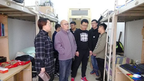 2月20日中午,学院党委书记阳东,党委副书记李行,及学工办老师一同走访了1栋、6栋学生寝室。了解学生的返校情况,询问同学们对寝室装修后的意见建议。同时希望同学们尽快适应新学期的学习生活。