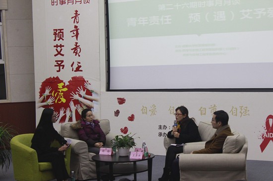 活动开始后,由一段视频引入主题,让现场观众了解艾滋病传播途径以及潜伏期。主持人分别从艾滋病的药物疫苗、临床研究和心理干预等方面向三位嘉宾进行了访谈。