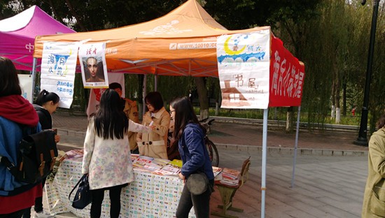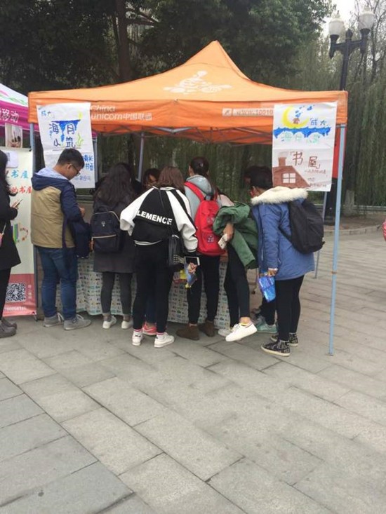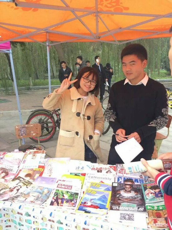 几位大二学子联合创办的“海月小筑杂志铺”在新空间进行了摆点宣传。