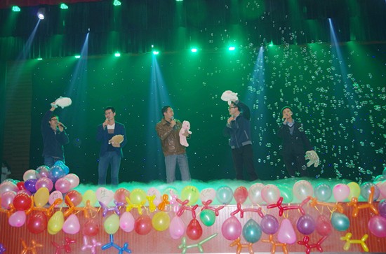 轻快活力的开场舞为晚会拉开帷幕,在阳东书记为我们致辞后,晚会进行了寝室文明风尚奖、学科状元的颁奖仪式;紧接着,晚会节目正式上演:一曲“再遇见”的深情合唱,打动了全场观众的心;一段热烈的舞蹈,展示了成大学子的青春活力;一个有奖应答互动游戏,带动了全场积极性;特邀双截棍社团紧凑精彩的才技表演,令众学子的眼睛为之一亮;幽默的推理,有趣的案件重演,“凶手是头儿!”,超级侦探默契的配合与果决的推论向人们展示了一个生动的故事;微博抽奖带领全场气氛走向沸腾;最后的歌曲串烧及大合唱,为晚会的顺利举行画上一个圆满的句号。