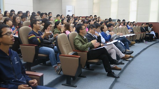 评选初期,各竞选班级班长给大家介绍了他们班级的概况:班上同学在学生会、协会的任职,同学们在学习和生活上取得骄人成绩。接下来又给大家展示他们班级获得的各个奖项、以及班级一系列效果显著的活动,如团活等。伴随着班长们尽情展现自己班级的特色和风采时,在场老师的眼里透着赞许,同学的眼里 最后,梁海鹏老师对此次活动进行了总结。每个班集体都很不错,期待16级各班级向着学长学姐们靠近,也希望所有的班集能够一起努力,共建优秀班集体。(文/黄月 图/杨淑雯)