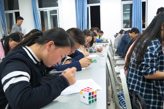 本次比赛分为三个环节:高难度脑力答题、数字技艺竞技、限时魔方复原。各个环节积极开拓和发散同学们的脑力思维,提高同学们的反应能力,让同学们在比赛中学到心理知识,展现全新的自我魅力。比赛中,各位选手应对挑战从容镇定,努力发挥着自己最大的潜力。他们心无旁骛地完成比赛,不管是在数字记忆还是在魔方比拼,他们都成就了最好的自己。