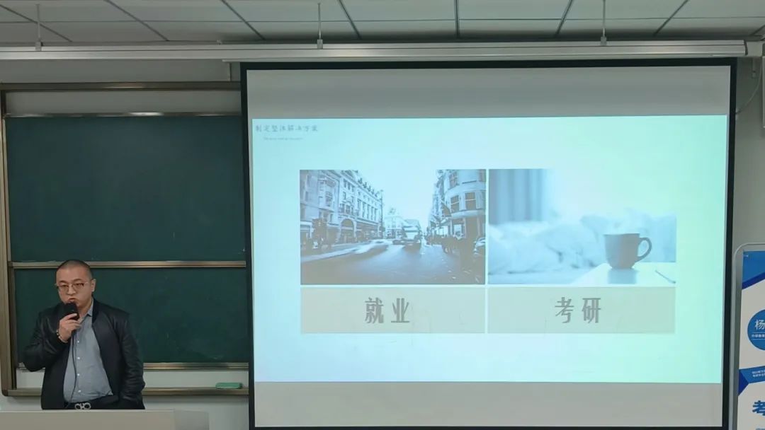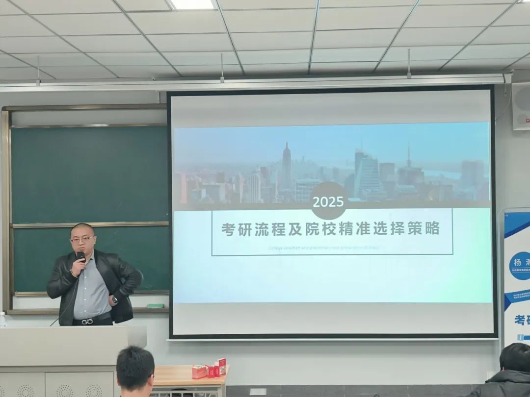 讲座开始,杨瀚老师分析了当前考研的形势和趋势,让更多的学生了解到考研竞争的激烈,并希望同学们明确自己的目标和方向。他强调,考研不仅是一次知识的检验,更是一次意志和毅力的较量,希望同学们能够保持积极的心态,全力以赴备考。随后,杨瀚老师从考研的全流程入手,为同学们提供了详细的备考建议,以帮助同学们更好地备考。在选择考研院校方面,强调了信息的重要性,提醒大家要注重报考院校的特殊限制条件,并告诉了同学们四种应慎重选择的院校。