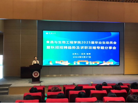 在新图书馆报告厅举行了2025届毕业生动员会暨秋招招聘趋势及求职攻略专题分享会。现场邀请到了王杰老师作为主讲嘉宾与同学们现场分享交流,学院党委副书记蒋桂高老师,毕业班班主任程琬寒老师,2025届毕业生参加。