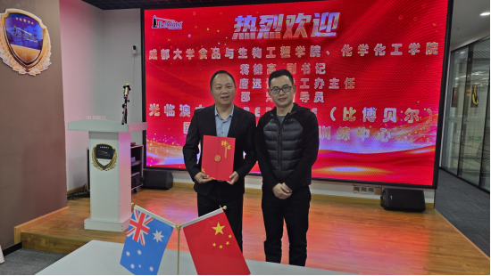 一行先后参观了企业展厅,观看公司宣传视频,详细了解企业发展历程、生产运营、用人需求等情况。座谈会上,蒋桂高介绍了学院建设发展、人才培养、校企合作等方面情况,重点推介了2025届毕业生,希望以访企拓岗为契机,与用人单位建立交流合作长效机制,在人才培养、实习就业、科研攻关、产教融合等方面进一步深化合作,推动科技成果转化,促进供需双方精准对接。公司负责人张宇介绍了公司的发展历程,主要是业务方向等情况。希望接下来加强院企合作的深度,强化产教融合科教融汇。随后学院为公司负责人张宇、张登静颁发“职业生涯与就业创业导师”聘书。