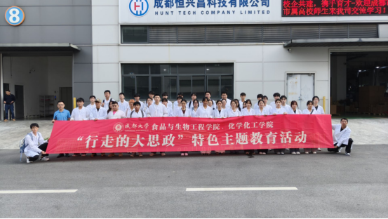 为深化“行走的大思政课”主题教育,将理论课堂与生产实践深度融合,2025年10月14日下午,学院组织2023级化学专业全体学生前往成都恒兴昌科技有限公司开展职场感知实践活动。学院党委副书记蒋桂高老师带队参加,旨在通过实地走访,引导学生在产业一线涵养职业素养、厚植专业情怀。