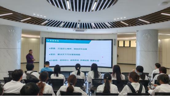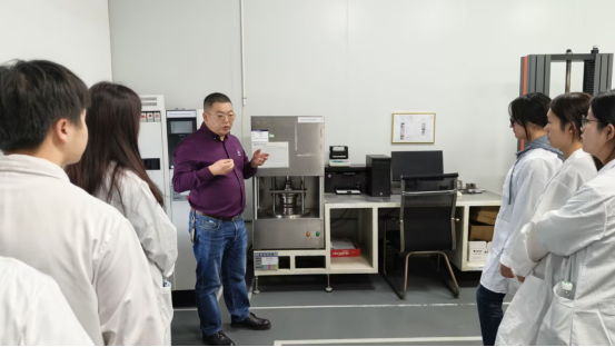活动首站,师生们在企业副总经理贾总的引领下,深入公司生产车间与办公区域进行“岗位体验”。同学们依次参观了通用硅胶软管生产线、挤出生产线、硅橡胶模压件及塑料生产线,近距离观摩产品制造流程,并对各岗位的职责要求、协作模式及技术应用有了直观了解。同学们边走边看,结合专业所学积极提问思考,切身感受到了化学专业知识在现代化工企业中的具体应用与价值。随后的“岗位说明与互动答疑”环节将活动推向高潮。贾总与公司人力资源团队为同学们系统介绍了公司发展、产品体系、组织架构及人才需求,并重点围绕“专业知识如何对接岗位技能”、“职场晋升路径如何规划”等学生关切的问题进行了细致解答。现场互动热烈,企业方严谨务实、精益求精的工匠精神,通过分享深深触动了在场学子,实现了“大思政”教育在实践场景中的生动渗透。