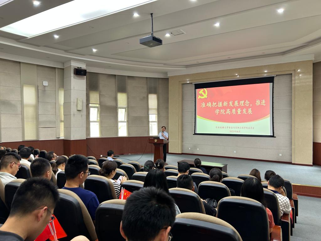 活动第一项,学院院长刘达玉以“准确把握新发展理念,推进学院高质量发展”为题,为学院党员讲专题党课。刘达玉指出“创新、协调、绿色、开放、共享”是新发展理念的内涵,是习近平新时代中国特色社会主义思想的重要内容。随后,联系学院目前申博及专业认证工作实际,阐述如何运用党的创新理论和方法思考问题和指导实践,增强做好实际工作、创造性开展工作的过硬本领。勉励各位党员同志服务学校、服务成都、服务四川,不断推进学院高质量发展,为建设新时代更高水平“天府粮仓”、 “治蜀兴川”及“成渝双城经济圈”的建设献智出力。