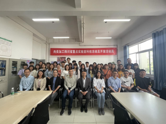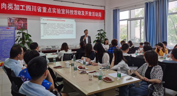 (本文消息 文/图 杨轶浠)根据四川省科技厅、省委宣传部、省科协、成都市科学技术局以及市科普教育基地联合会关于开展科技活动的通知精神,肉类加工四川省重点实验室主题为“后疫情时代肉类食品安全供给与健康”的科技活动与实验室公众开放周于2021年5月28日启动。本活动以弘扬科学精神,普及科学知识,推动科技创新成果为宗旨,面向公众、青少年、高校师生和食品企业开放,采用线上直播、线下讲座、现场观摩、开放参观、产品品鉴、互动体验等多种形式开展。来自企业、高校及科研院所的200余名社会各界人士参与了第一天的活动,实验室主任王卫教授以“‘人造肉’与食品供给和安全”为题向参与者普及了人造肉研究现状及相关前沿技术;张锐副研究员以“大肠杆菌疫情和异趣分享”为题,向参与者分享了国外疫情防控见闻,普及了病原性致病菌的危害及预防,引导大众树立科学的肉品健康消费观。
