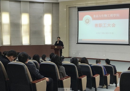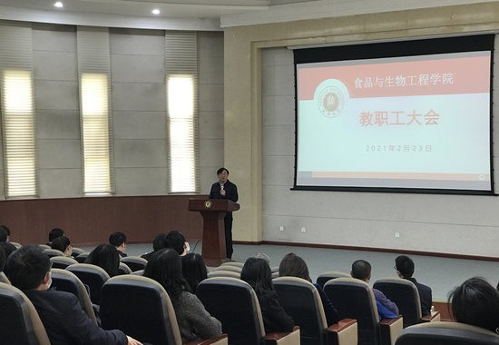 2月23日下午,学院在九教09D208E演播厅召开2020-2021学年春季学期开学教职工大会,院领导班子成员、各系部室主任及全院教职工参加了本次会议,会议由邹亮书记主持。