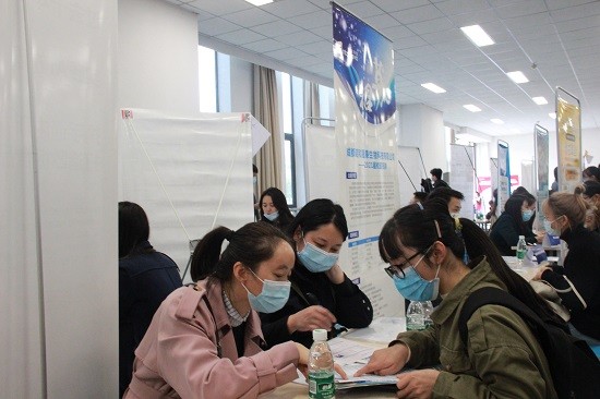 2021届生物、医药、护理类毕业生双选会于综合教学楼C栋一楼大厅顺利举办。本次双选会共有江苏雨润肉类产业集团有限公司、射洪市妇幼保健院等68家用人单位到场,生物、医药、护理类招聘企业占比达96%,提供岗位2400余个。学校及学院领导来到双选会现场,指导做好双选会各项保障与服务工作,并与用人单位亲切交流。