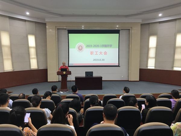 2019-2020年度第一学期开学教职工大会在九教演讲厅举行。院领导班子及学院全体教职工参加了会议,会议由阳东书记主持。