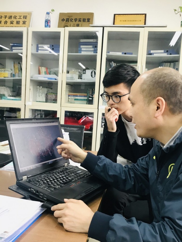 扎实的技术是完成课题的首要前提。段怀川的指导教师是药学与生物工程学院的胡建平教授。在胡老师的悉心指导下,段怀川学习了多种分子模拟技术,如3D-QSAR、分子动力学模拟、分子对接、高斯网络模型、药效团分析和贝叶斯分类等。如今谈起这些模拟技术,段怀川如数家珍。“每一次胡老师讲解技术都很细心。他会认真检查讲解用的每一页PPT是否合理,每一个字是否看得清楚,每一张图片是否清晰。讲解技术时,在需要特别注意的地方,胡老师还会刻意停下来,询问我们是否能够理解,是否做好了笔记。”段怀川说,“除此之外,在实际应用技术的过程中,学长学姐的帮助是不可缺少的,他们会帮助我解决应用中出错的问题,帮我普及原理性的知识,关心我的课题进展,甚至关心我的生活,帮我出谋划策。”实验数据的获取往往要经过几天甚至几周,在遇到各种困难时段怀川并没有气馁,反而越挫越勇。段怀川说,“有一次,在NDM-1数据库的构建当中,需要在较短时间内对大量的抑制剂分子进行计算处理,凭一己之力几乎无法完成。幸亏胡老师指导及时,同课题组孙歆、严潇、谢涛和吴志祥等学长们也伸出了援助之手,该工作得以圆满完成。”