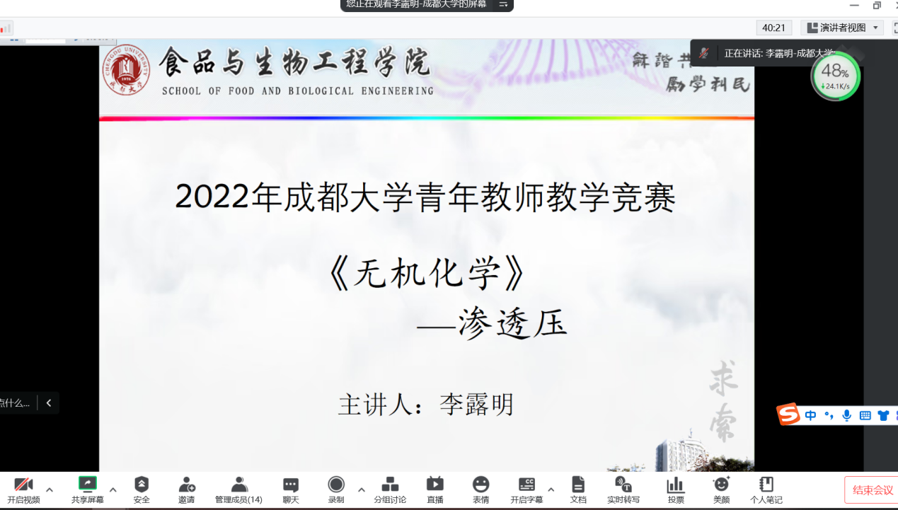 采用线上腾讯会议和线下会议同步举行的方式进行了院级青年教师教学竞赛。本次竞赛由教学副院长王新惠主持,李红梅、向达兵、万燕、陈卫军、刘文龙、周闯各系部主任担任评委,各系部初赛推荐的4名优胜者奉美林、李露明、卢云浩、谢松志老师参赛。