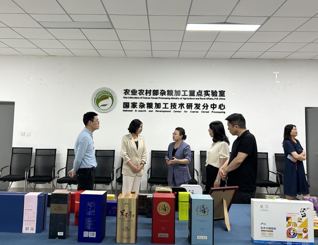 九寨沟县党政代表团一行人,考察农业农村部杂粮加工重点实验室,并交流了高海拔地区杂粮种植经验、产品开发、科研成果转化及未来合作意向等。