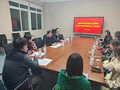 2023年大学生职业规划大赛(成长赛道)决赛。共有来自三个年级的8位同学参加到了学院决赛阶段比赛。学院党委副书记李云成老师,学工办邵洋老师,学院分团委学生前负责人何雨辰、张宝丹参加并担任比赛的评委。