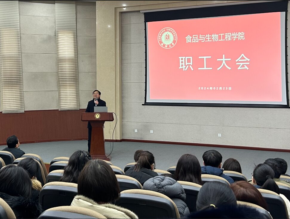 新学期教职工大会在学院演讲厅召开,全体教职工参加会议,全体院班子成员出席会议,会议由副院长张崟主持。