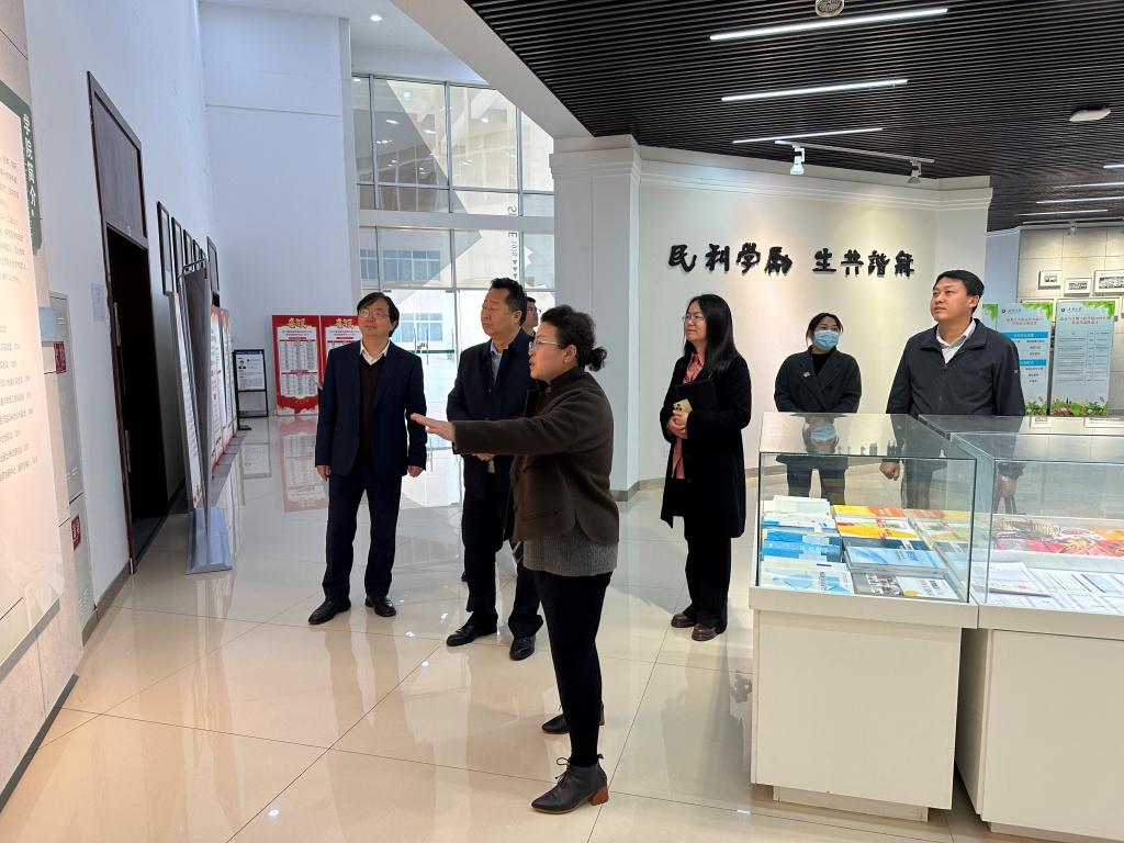 胡秀强一行参观了学院文化展示墙、评估工作办公室、阅览室、职工之家等,随后在会议室参加座谈会,听取工作汇报。会上,学校党委常委、学院院长刘达玉就学院学科优势特色、发展目标和路径、人才强院提升竞争力等做了汇报。党委书记孙雁霞从学院发展沿革、党的建设工作、学科专业设置、师资队伍建设、教学科研成果、人才培养成效、学院面临的困难挑战及今后努力的方向等,进行了详细的汇报。其他班子成员就分管工作逐一进行了汇报。