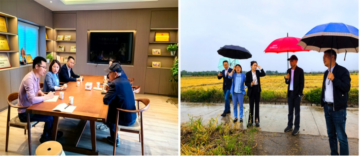 座谈会上,国家现代农业产业园管委会部长何遇春对产业园区技术需求详细介绍,刘达玉教授和王新惠教授分别介绍了团队在农业领域拥有的技术成果,双方就水稻绿色种植技术进行了详细交流,并达成服务团在产业园区示范水稻绿色种植技术意向。会后,团队成员实地调研确定示范地点,并采集示范田和对照田土壤做数据分析,为后续水稻绿色种植提供土壤数据。