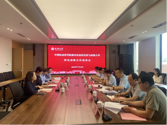 就进一步深化双方战略合作进行座谈交流表示热烈欢迎,她指出,都市所是国家级农业科研单位,是国家成都农业科技中心的重要支撑机构,是“国家队”,在农产品加工、设施农业、农业环境、生物安全、山地农机等重点领域都是“领头羊”。2021年双方就建立起战略合作关系,基于优势互补,共赢发展的理念,在研究生联合培养、科研协作攻关、干部人才交流等方面开展了深入合作,期待双方能进一步深化战略合作,加强人才培养与交流,共建产学研合作平台,联合科研攻关,联合申报国家和地方重大科研项目,围绕农业科技前沿问题、热点问题开展联合研究。