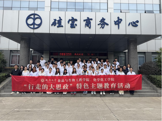 3月23日,师生一行首站抵达成都硅宝科技股份有限公司,先后参观企业总部荣誉室、技术中心及新津生产基地(亚洲最大有机硅新材料生产基地)。作为创业板首批上市公司、国家制造业单项冠军示范企业,硅宝科技在有机硅新材料领域具备行业领先地位。在企业导师带领下,同学们近距离了解高端有机硅密封材料的研发体系、自动化生产流程、智能仓储与质量管控体系,深入学习有机硅材料在建筑、新能源、电子电器等领域的应用场景。在感受化工产业智能化、绿色化、规模化发展趋势的同时,同学们也从企业坚持自主创新、勇攀科技高峰的奋斗历程中,深刻体悟到科技报国的时代担当。