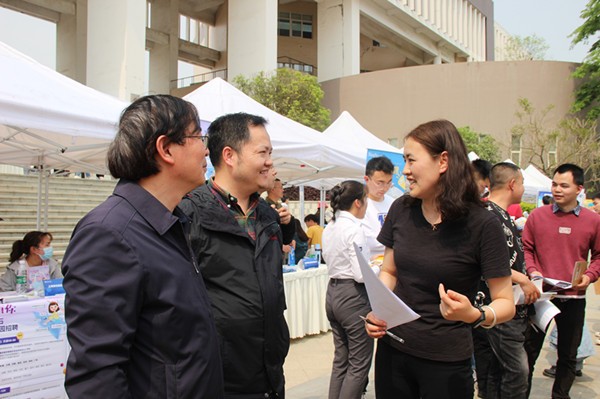 在双选会进行过程中,学生处李维处长,学院院长刘达玉,学院党委书记邹亮也来到现场。与用人单位在校企院企合作等方面开展交流,同时就学生就业、发展下一步的服务、举措等进行了探讨。