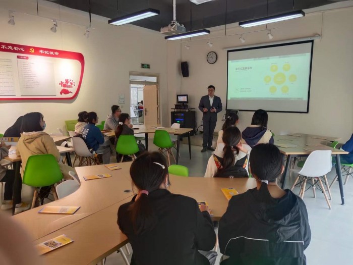 在座谈会开始过程中在学生活动中心113室举行了公司宣讲会,公司人事经理想到场30多位同学介绍了公司的生产、生活、个人发展等方面。宣讲会过后同学们与公司人事经理进行了面对面的交流。