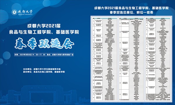 、基础医学院春季双选会在九教前广场顺利举办。本次双选会共有江西正邦科技股份有限公司、四川喜之郎有限公司、邻水县人民医院等76家用人单位到场,食品、生物、医药类招聘企业占比100%,招聘岗位专业相关度86%,提供岗位1800余个。学生处及学院领导来到双选会现场,指导做好双选会各项保障与服务工作,并与用人单位亲切交流。