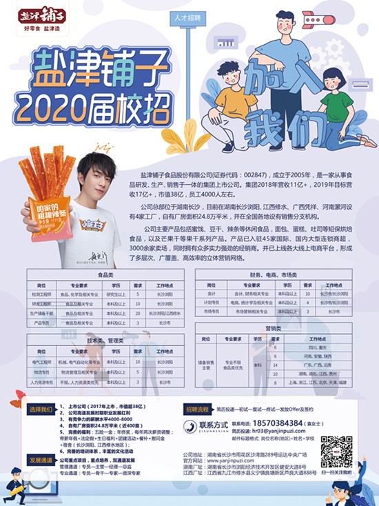 我们期待你的加入,共创“好零食、盐津造”盐津大家庭!