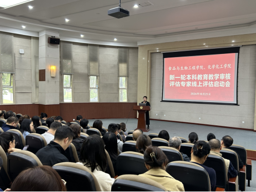 在9D208演播厅召开新一轮本科教育教学审核评估专家线上评估启动会,全院教职工参会,全体班子成员出席会议,会议由党委书记孙雁霞主持。